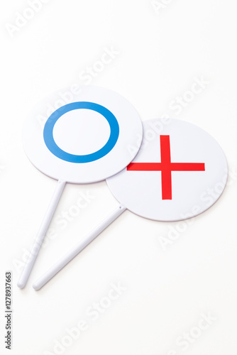 © years, Fototapeta premium 白背景に丸とばつのプラカード