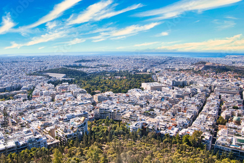 © san724, Fototapeta premium リカヴィトスの丘から見た白い街並みのアテネ市内