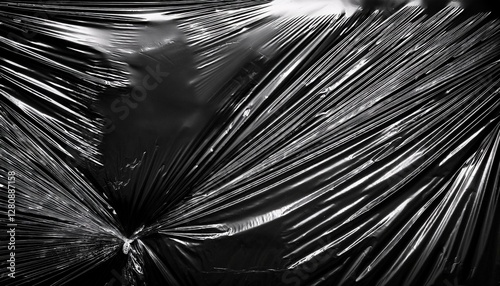 Obraz premium 黒い背景に広がるシワの入ったプラスチックラップのテクスチャー