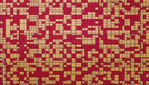 © Bambi and Sunny, Fototapeta premium 和柄、和風イメージの背景素材(朱色、金)