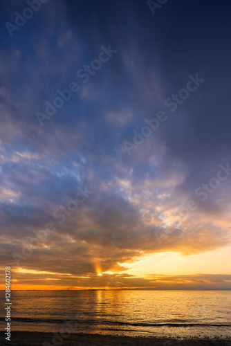 Fototapeta premium 湘南の夕暮れ、静寂の海と輝く空