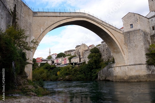 Obraz premium 内戦を思い起こさせるボスニアモスタルのスタリ・モスト トルコの雰囲気が残るモスタルの街がエキゾチックで印象的だ。