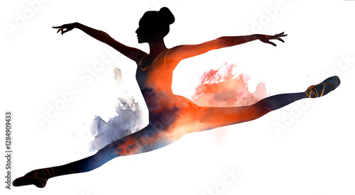 © ochikosan, Fototapeta premium チュチュを着たバレーダンサー。芸術的でカラフルでダイナミックなバレリーナのシルエットの水彩画。