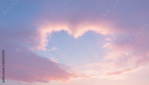 Obraz premium 파스텔 톤의 하늘, 구름이 자연스럽게 하트 모양을 이루고 있으며 따뜻한 석양이 이를 부드럽게 물들이고 있다