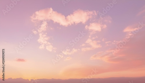 Fototapeta premium 파스텔 톤의 하늘, 구름이 자연스럽게 하트 모양을 이루고 있으며 따뜻한 석양이 이를 부드럽게 물들이고 있다