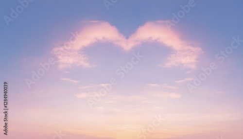 Obraz premium 파스텔 톤의 하늘, 구름이 자연스럽게 하트 모양을 이루고 있으며 따뜻한 석양이 이를 부드럽게 물들이고 있다
