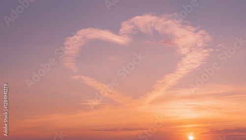 Fototapeta premium 파스텔 톤의 하늘, 구름이 자연스럽게 하트 모양을 이루고 있으며 따뜻한 석양이 이를 부드럽게 물들이고 있다