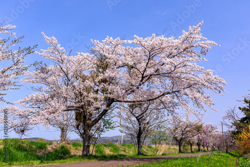 Obraz premium 北海道伊達市、桜が咲き誇る胆振線跡地・風のメモリー【5月】