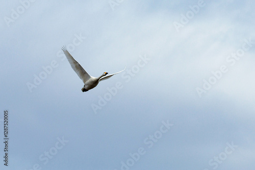 Fototapeta premium 餌場に向けて飛び立つ白鳥