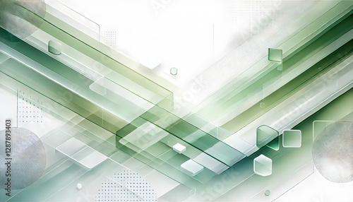 Obraz premium 緑と白の抽象的な背景 – 透明な幾何学模様のデザイン