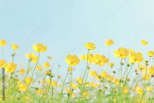 © pham, Fototapeta premium 春の日差しの中で咲く黄色の花々が広がる美しい風景