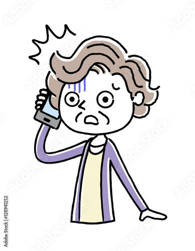 © ケイーゴ・K, Obraz premium 電話:シニア女性、驚く、不安
