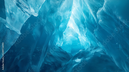 © bephoto, Obraz premium 青く輝く氷河のクレバス – 大地の歴史を刻む壮大な氷の世界