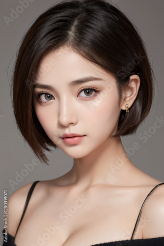 Obraz premium 女, 美しさ, ドレス, ファッション, モデル, 髪の毛, 黒, ブルネット, 人, 淑女, スタジオ, うっとりさせる魅力, 顔, 体, 笑う,...