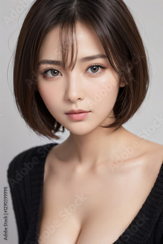 Obraz premium 女, 美しさ, ドレス, ファッション, モデル, 髪の毛, 黒, ブルネット, 人, 淑女, スタジオ, うっとりさせる魅力, 顔, 体, 笑う,...