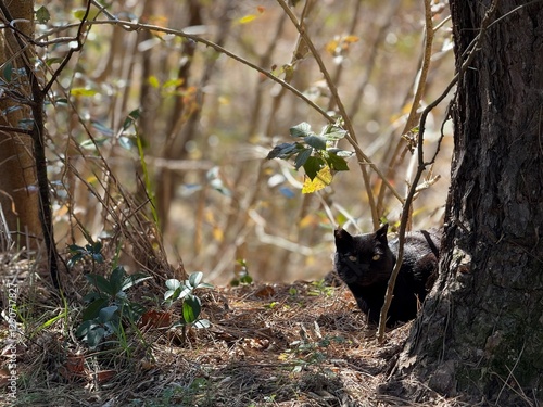 © いのぅ, Fototapeta premium 森林の中の黒猫