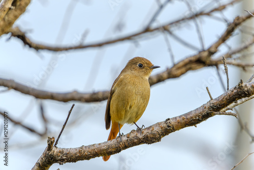 Fototapeta premium 冬の木の枝にとまるジョウビタキのメス