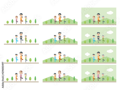 Fototapeta premium 四季の自然の中でヨガのポーズをする人 健康 運動