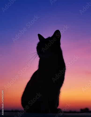 Obraz premium シンプルな色彩グラデーションを背景に、モダンでクリーンな印象の猫のシルエット