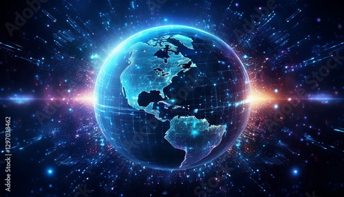 Obraz premium 거대한 행성이 픽셀처럼 해체되며 입자로 퍼지는 장면