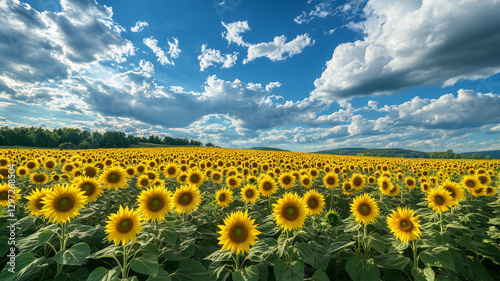 Obraz premium 真夏の輝き – 入道雲とひまわりの共演