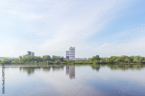 © Тищенко Дмитрий, Obraz premium Промышленное предприятие на берегу реки