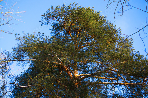 © fotych, Obraz premium Крона кедра на фоне синего неба