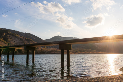 Fototapeta premium 三里沈下橋 夕日を眺める (高知県 四万十市)