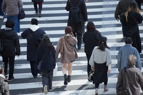 © zheng qiang, Obraz premium 冬の都市の街の交差点の横断歩道を渡る人々の姿