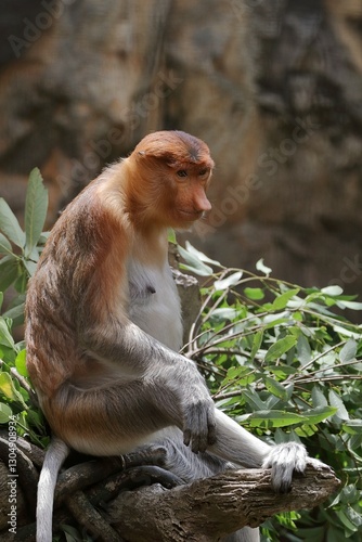 © osaru_photos, Naklejka premium 座ったメスのテングザルのポートレート
