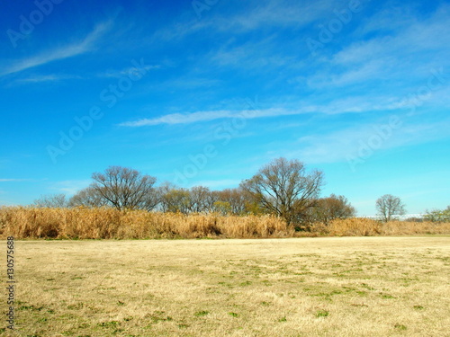 © smtd3, Obraz premium 冬枯れの河川敷風景