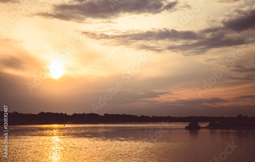 © Maryna Konoplytska, Obraz premium Величественный закат над рекой