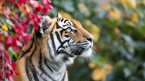 © StudioFF, Obraz premium 虎の横顔と緑の背景