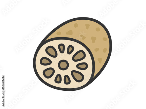 Fototapeta premium レンコンのアイコン(線画カラー)のイラスト
