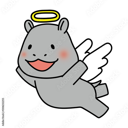 © てがきっず, Naklejka premium 飛んでいる天使の格好をしたカバ