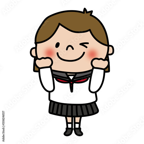 © てがきっず, Obraz premium ガッツポーズをするセーラー服を着た中学生の女の子1