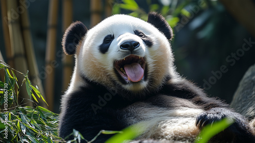© bephoto, Obraz premium 大あくびをするパンダののんびり可愛い瞬間