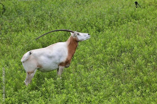 © osaru_photos, Fototapeta premium 草原に立ち見上げるシロオリックス