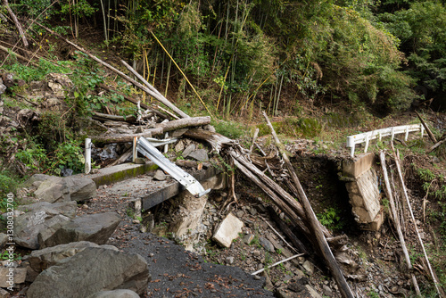 © Kazuki Yamada, Obraz premium 土砂崩れして通行止めになった道