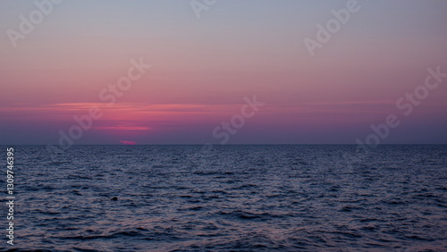© uumm, Obraz premium ピンク色の夕焼けと水平線と海