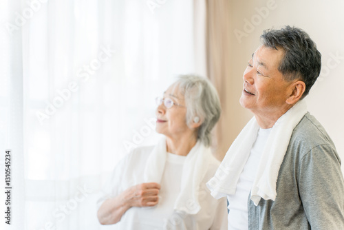 © buritora, Obraz premium 介護施設・デイサービス・スポーツジムで運動・トレーニングするシニア世代の男女