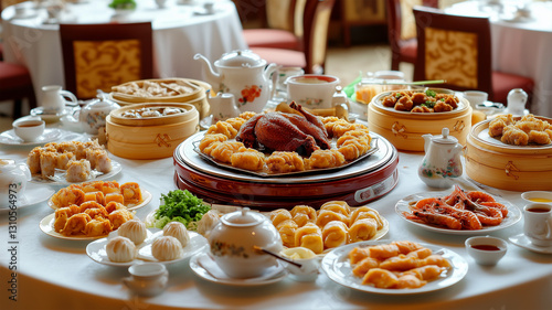 © bephoto, Fototapeta premium 円卓に広がる至福の中華フルコース、日本の高級中華レストランの宴