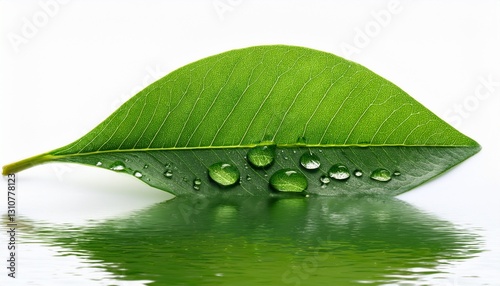 © 호균 최, Fototapeta premium 흰색 배경에 투명한 물방울이 맺혀 있는 나뭇잎