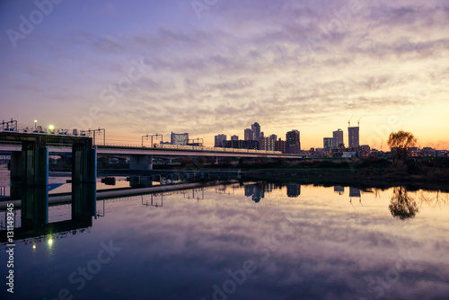 © blew_f, Naklejka premium 夕暮れの高架橋、多摩川