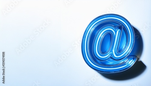 Obraz premium 블루 네온 스타일의 '@' 기호가 빛나는 배경화면