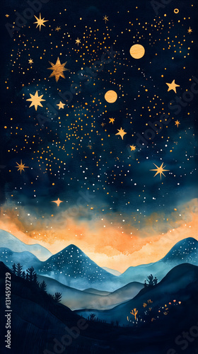 Obraz premium ท้องฟ้ายามค่ำคืนที่เต็มไปด้วยดวงดาวส่องแสงระยิบระยับเหนือทิวเขาที่ปกคลุมไปด้ว...