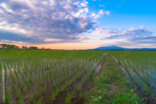 © 智志 丸山, Fototapeta premium 水田の夕景(庄内平野)