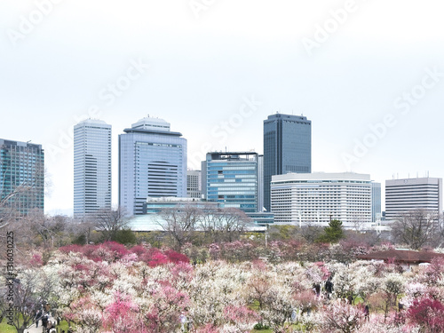 Naklejka premium 大阪の街に咲き誇る梅の花