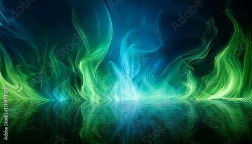 Obraz premium 緑と青の炎が舞い上がる幻想的なシーン