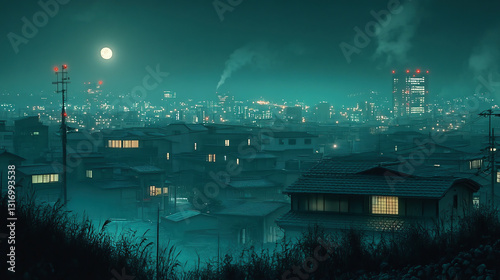 © wata _Japan, Fototapeta premium 月夜に浮かぶ住宅街